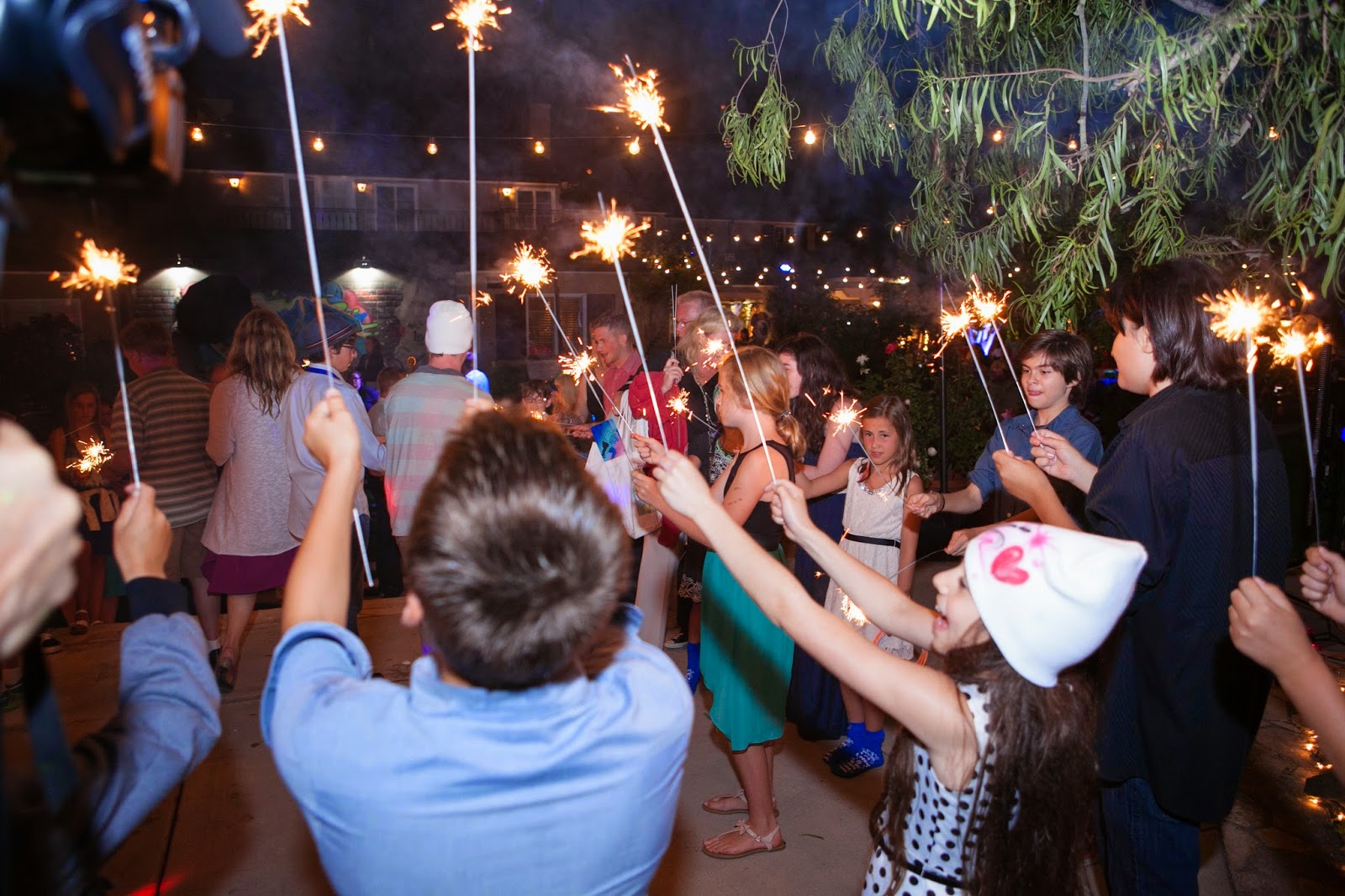 When it got dark and the party kicked into full swing, out came all of the light up toys. The DJ was handing out glow stick headbands, the pool had light up balls, the lounge furniture tables lit up, and out came the light up martini glasses filled with "chocolate mocktinis". Everyone toasted to Jesse with Pink's "Raise Your Glass" playing in the background. And to end the night, guests were given sparklers! Both kids and adults alike had an amazing time.